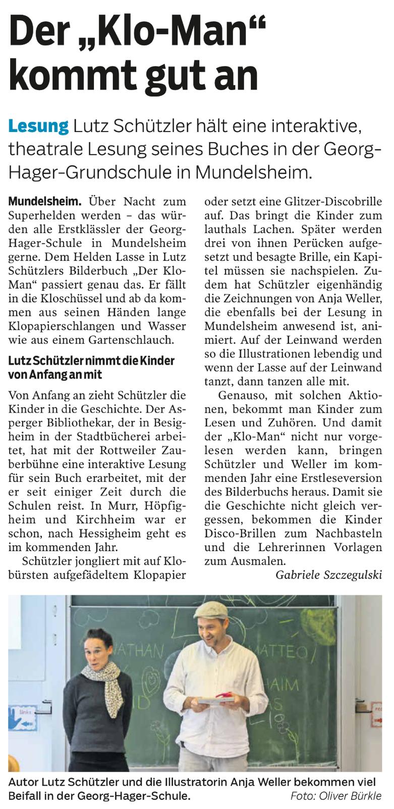 "Mit absolutem Abstand die beste Buchvorstellung, die ich jemals erlebt habe … ich habe noch nie erlebt, dass eine erste Klasse so dabei war …“ (Georg-Hager-Schule, Mundelsheim)