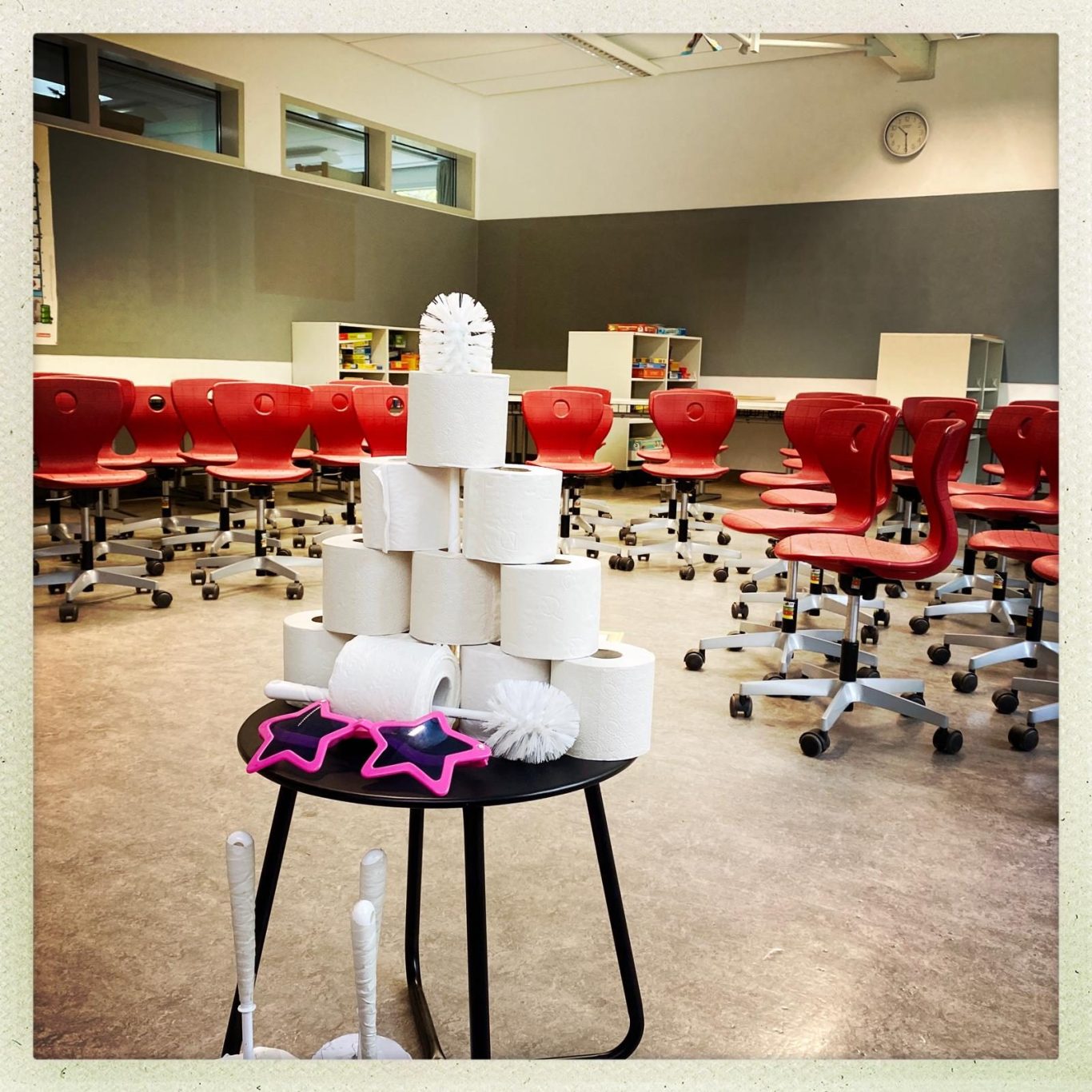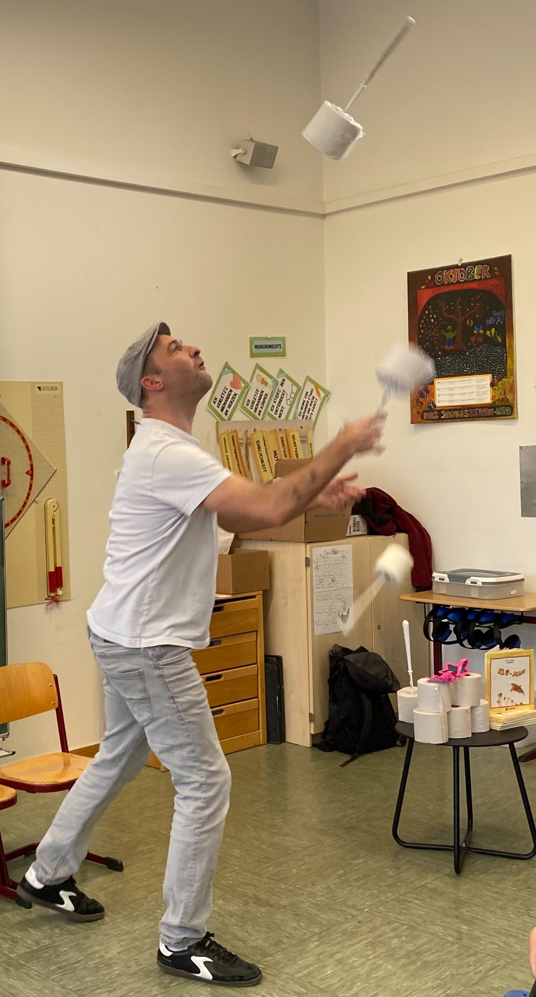 ... mit Jonglage (fliegende Klorollen)
