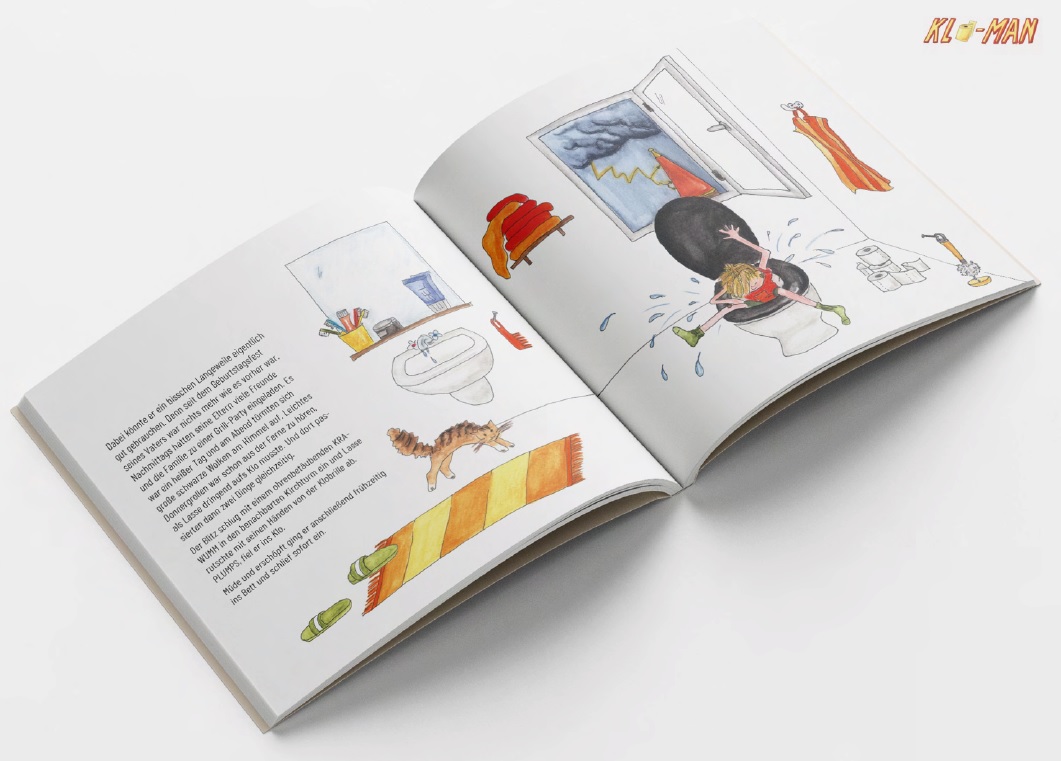Bist Du in Not oder hast Kack, KLO-MAN ist immer auf Zack! Lasse ist ein echter Superheld, zumindest wenn es nach seiner kleinen Schwester geht. Seit er bei einem Gewitter vor Schreck ins Klo geplumpst ist, hat er tatsächlich seltsame Superkräfte. Doch erst, als er bei einem Notfall über sich hinauswächst, spürt er es selbst: Er ist wirklich ein Superheld. Er ist KLO-MAN! Der neue Superheld unter den Bilderbüchern.